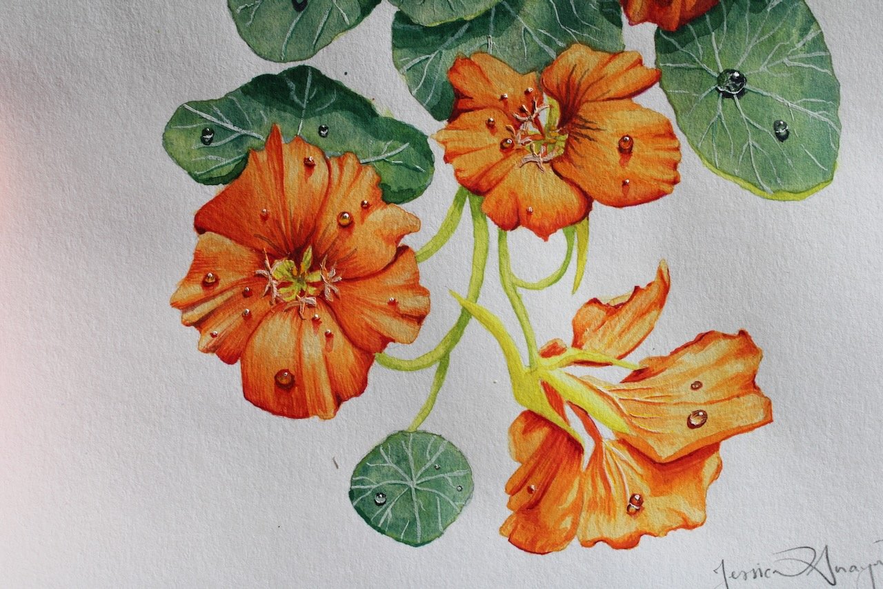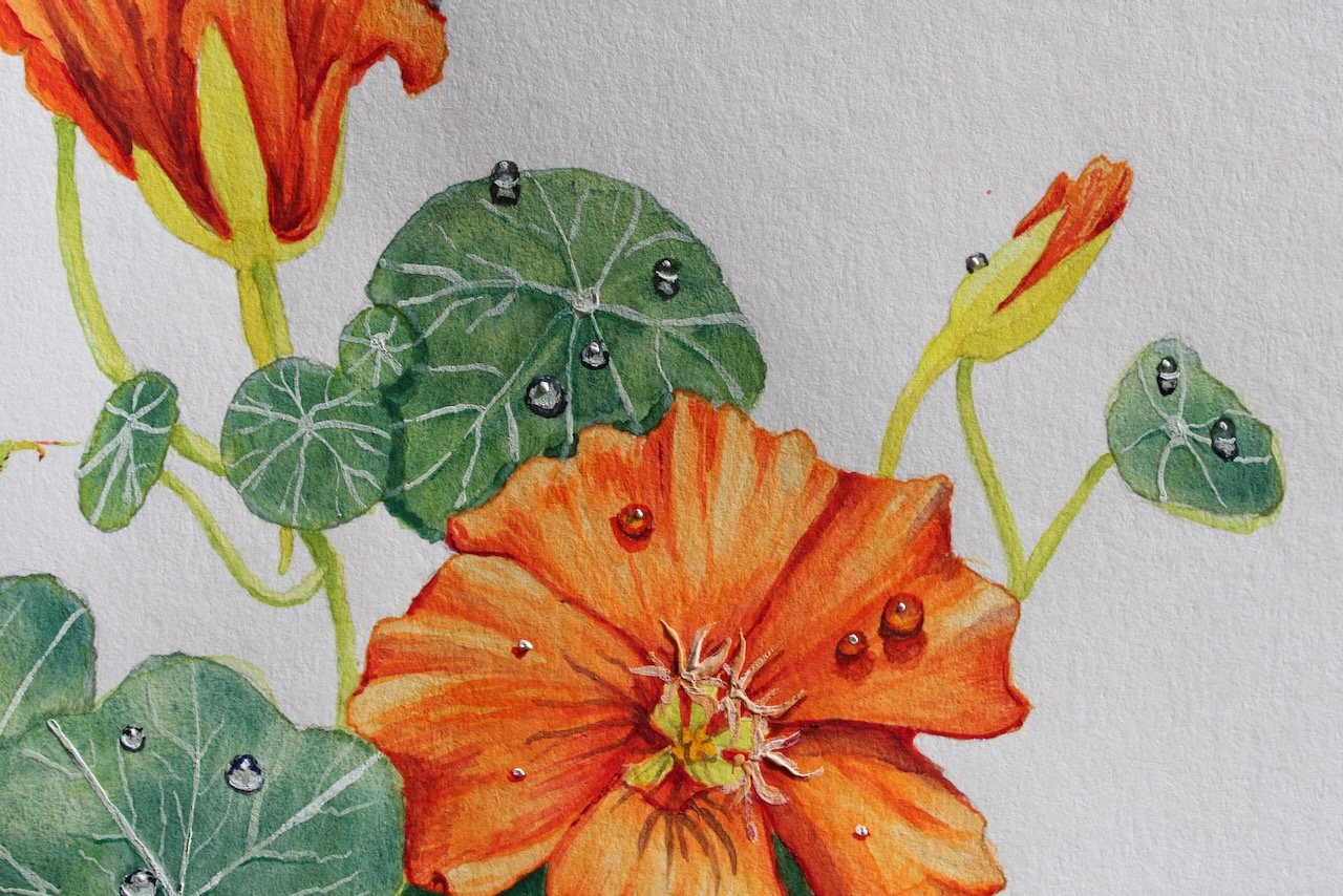 Nasturtiums painted with watercolor and gouache printed on archival paper in the highest quality.