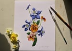 Colombine and Violas painted with watercolor printed on archival paper in the highest quality.