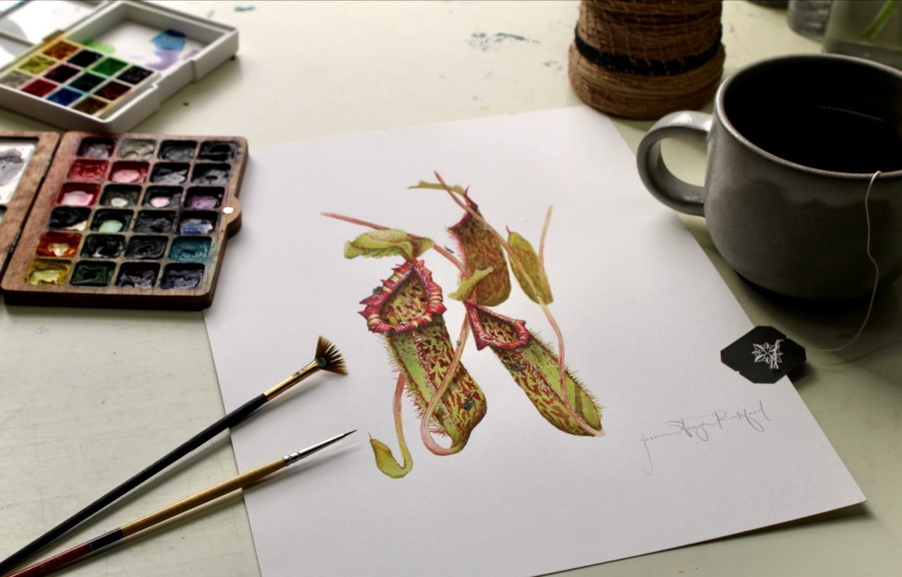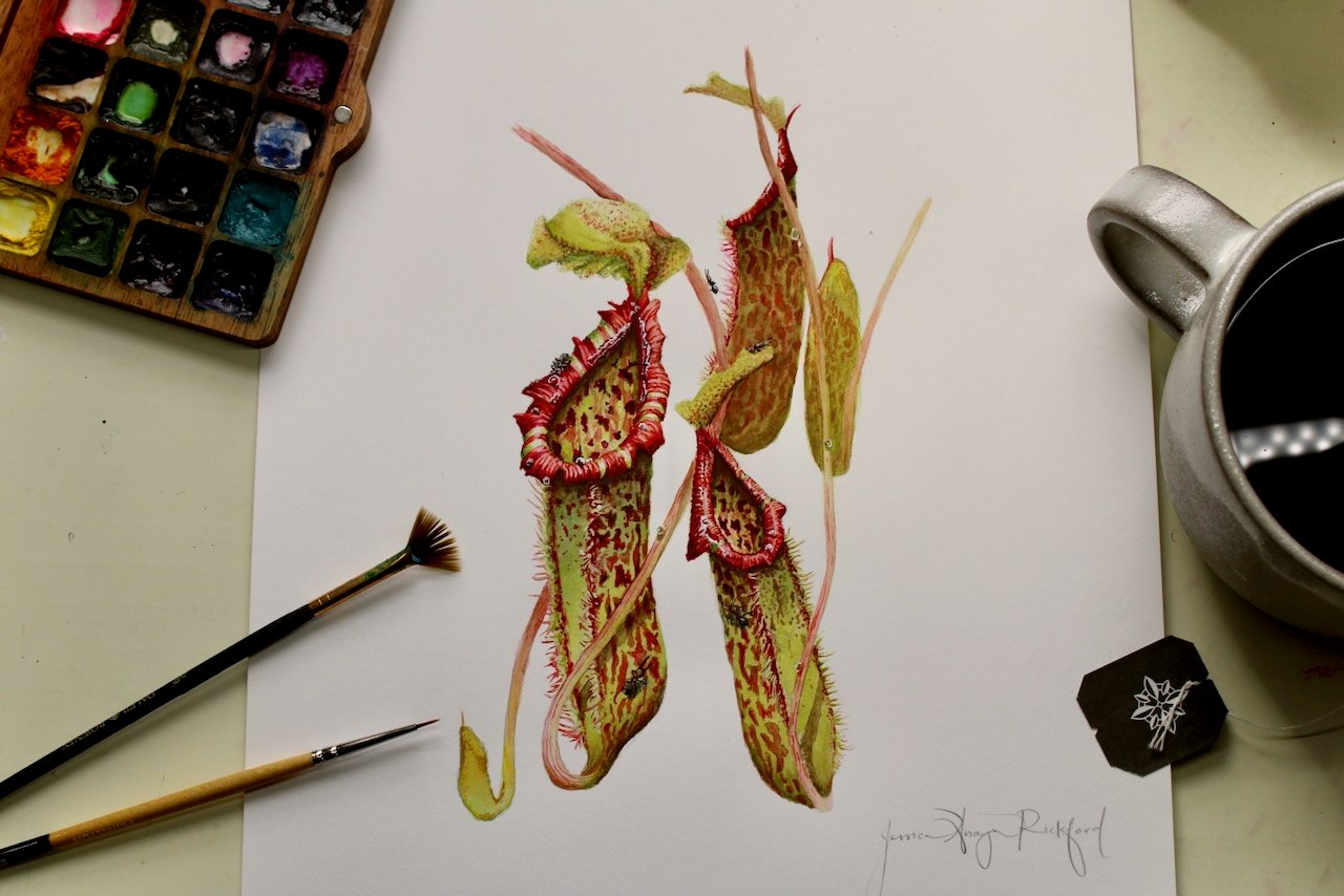 Nepenthes Miranda (Pitcher Plant) painted with watercolor, gouache and colored pencil printed on archival paper in the highest quality.