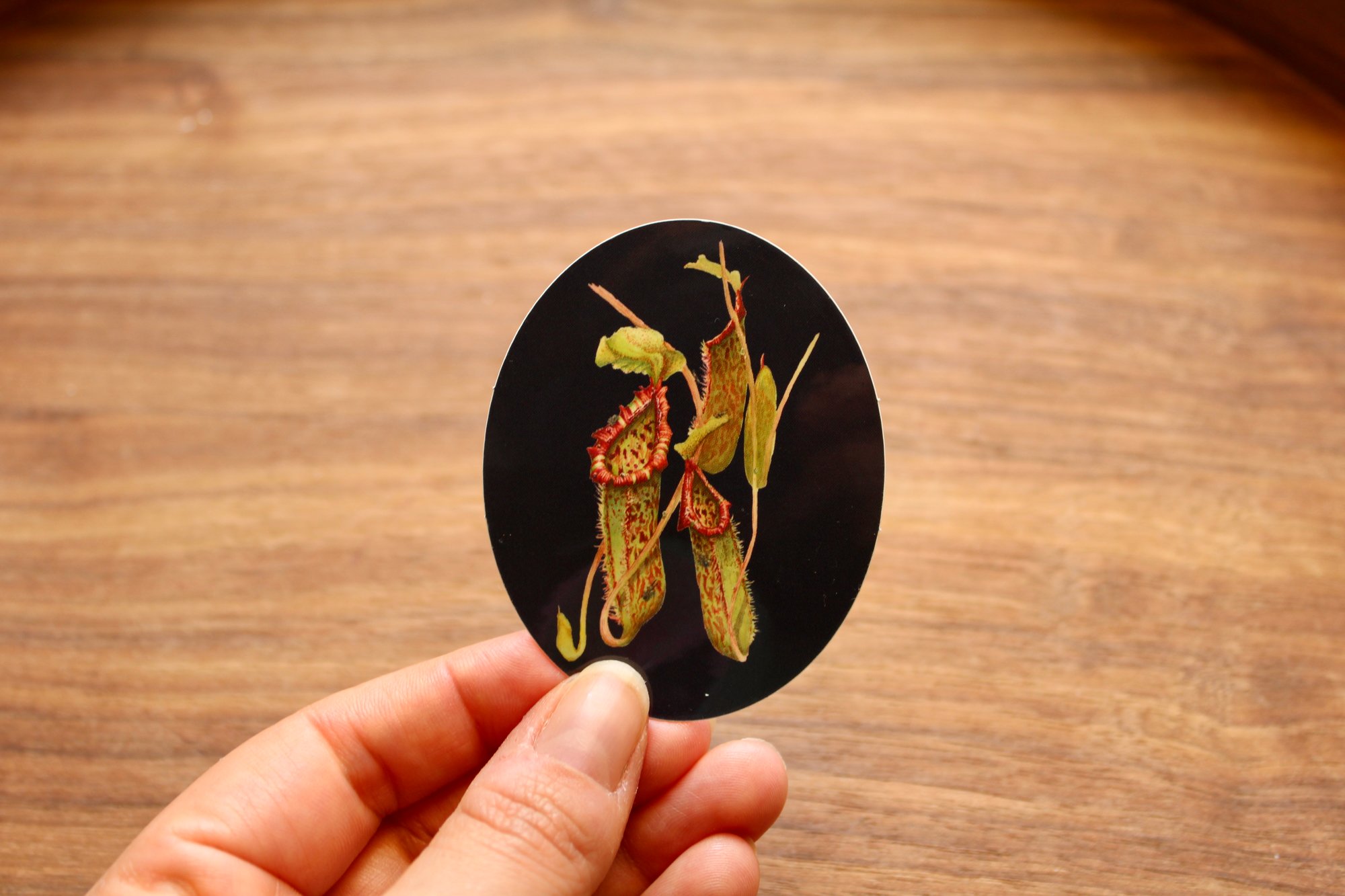 This Sticker is made from the painting "Lethal". Enjoy the strange world of Carnivorous plants with this Nepenthes Miranda!