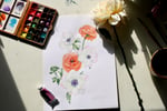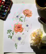 Anemones and Ranunculus painted with watercolor printed on archival paper in the highest quality.