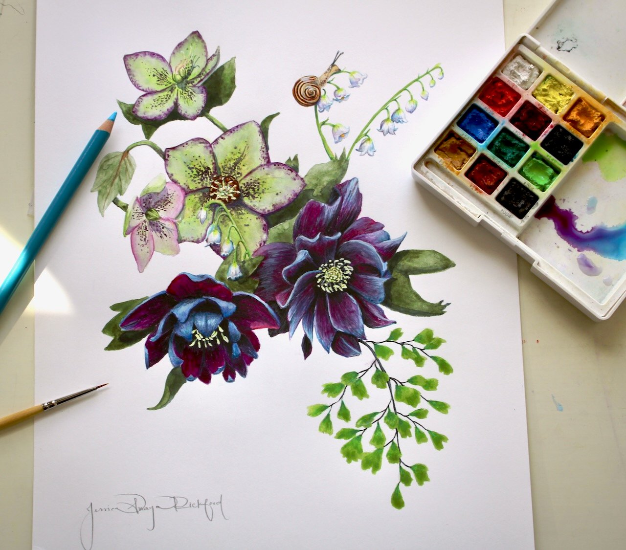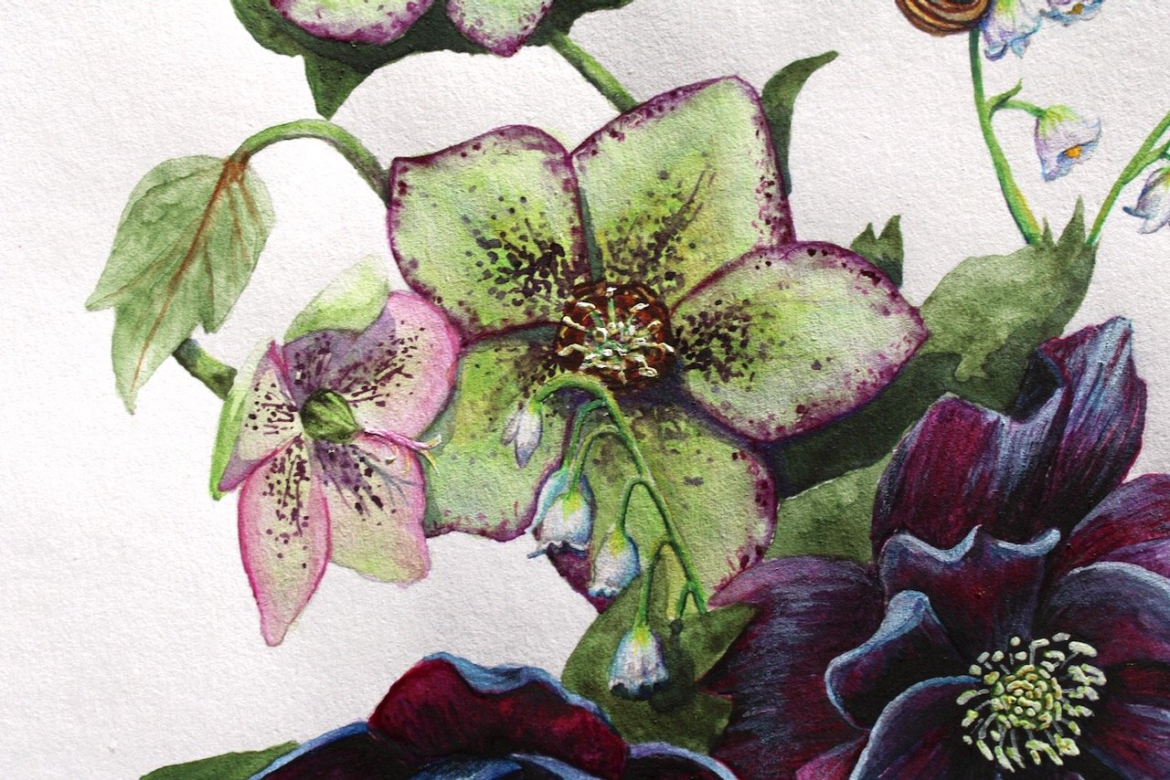 Hellebore painted with watercolor and colored pencil printed on archival paper in the highest quality.