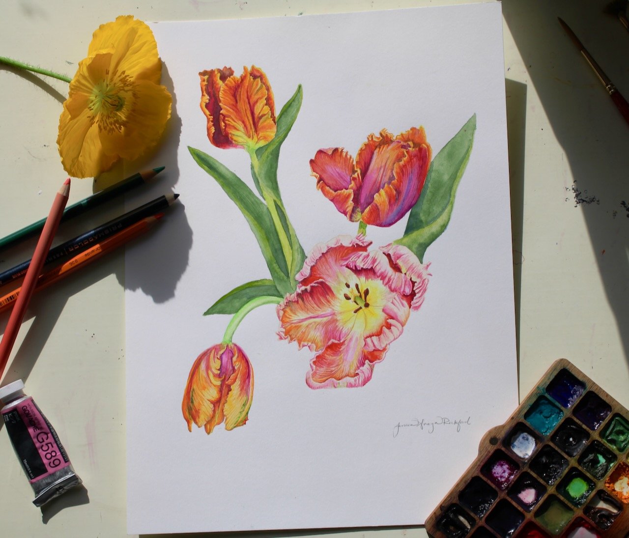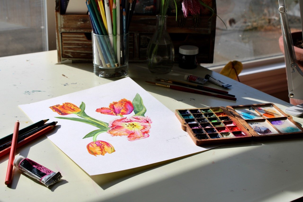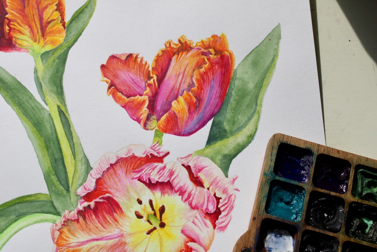 Parrot Tulips painted with watercolor printed on archival paper in the highest quality.